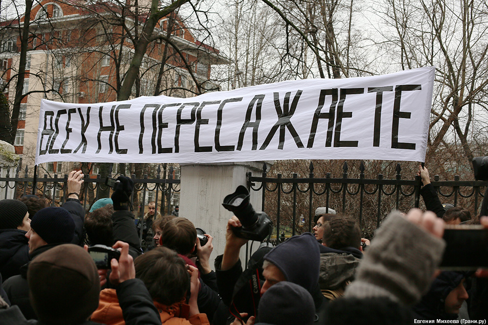 За последние несколько минут полиция задержала десятки активистов. Люди крепко сцепляются, иногда им удается помешать незаконным задержаниям. Полицейским не удалось вытащить из сцепки Марию Алехину и Надежду Толоконникову.